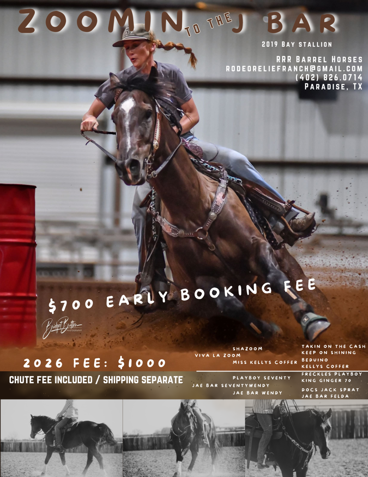 Zoomin To The J Bar is the kind of stallion that makes you stop and watch. Standing at 15.2 hands, this big-boned stud-muffin is built to last - with a massive stride, solid foundation, and the kind of structure that screams longevity and performance. He's not just eye-catching, he's the full package: athletic, trainable, versatile, and a pedigree packed with proven winners and producers.